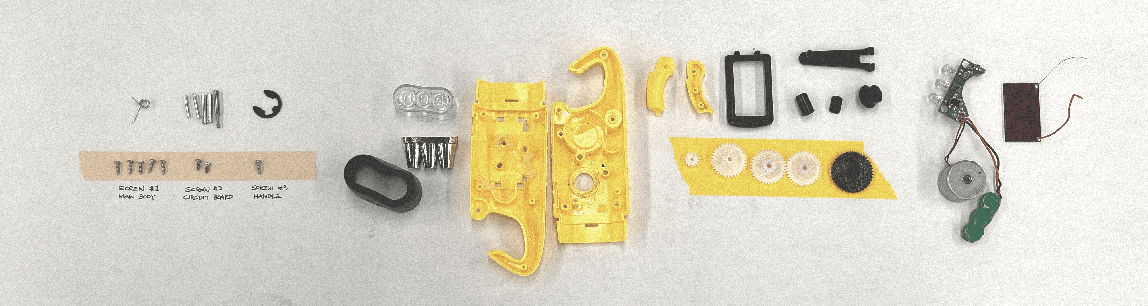A commercial fidget toy was fully disassembled to analyze its components, gear mechanisms, and assembly logic. Insights from the teardown informed early prototypes and CAD studies to develop a compact and satisfying mechanical motion.